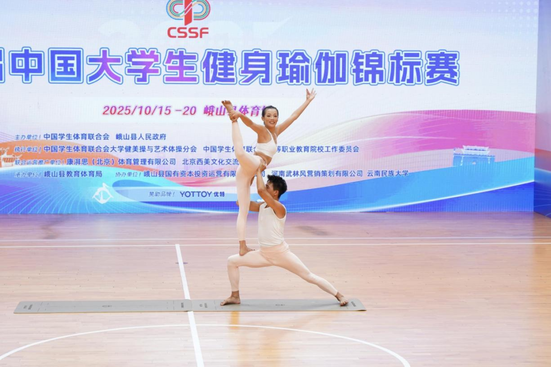 10月15日至20日,2025年第二届中国大学生健身瑜伽锦标赛在玉溪市峨山县体育馆圆满收官。本次赛事汇聚了北京大学、北京体育大学、南京大学等全国53 所顶尖高校的576名运动员,设置236个竞赛项目,规模宏大、竞争激烈,是国内大学生健身瑜伽领域的高水平赛事。